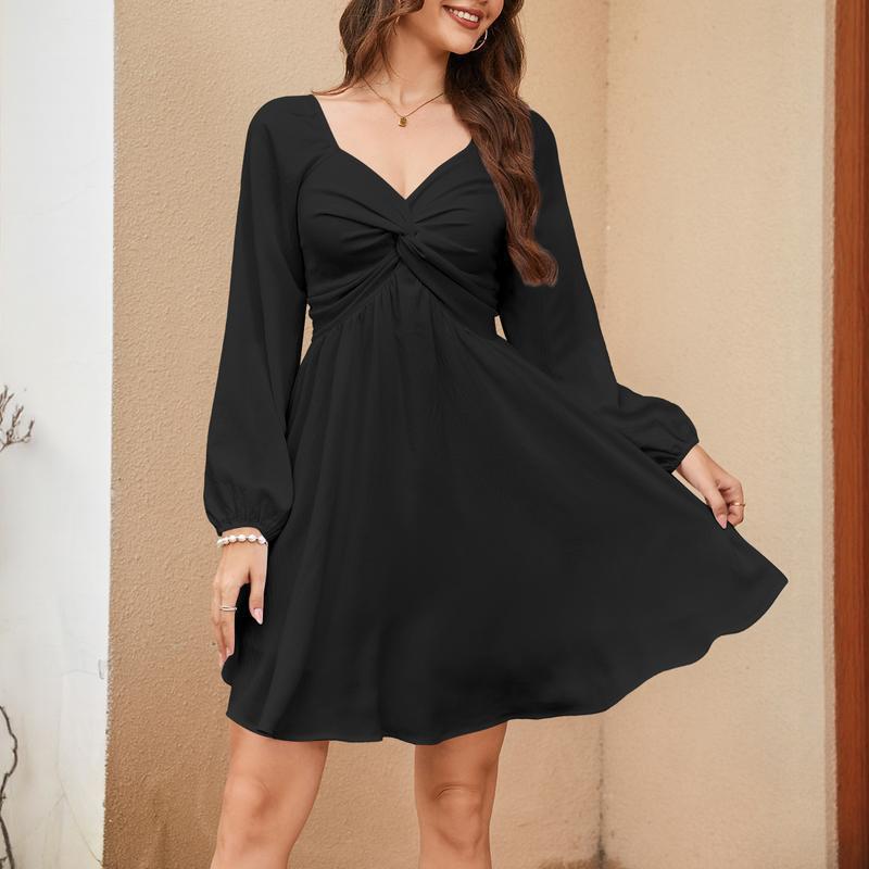 New Square-neck Short-sleeve High-waisted Dress